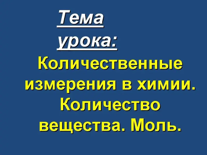 Тема урока: "Количественные отношения в химии. Количество вещества. Моль"