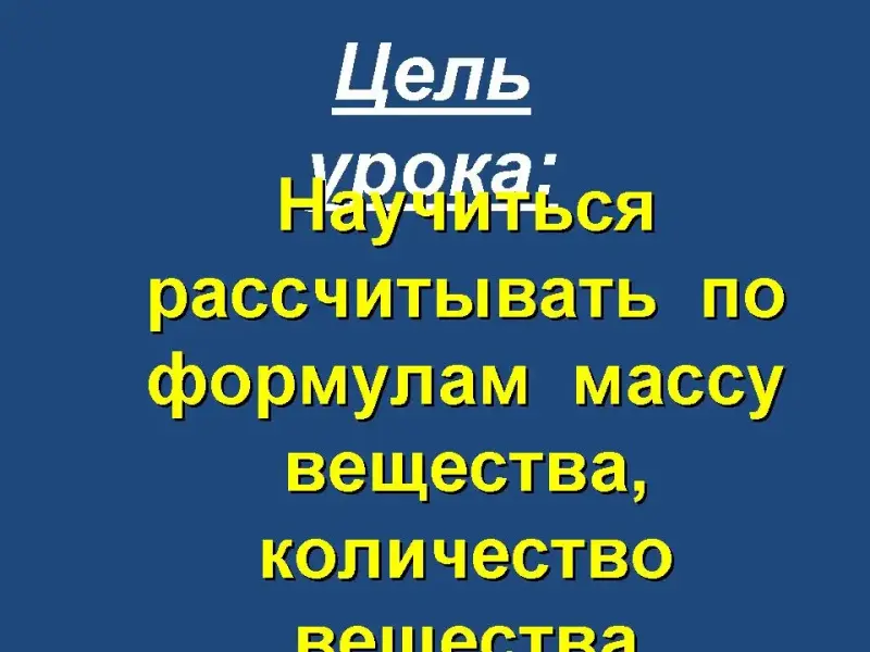 - Образовательная: сформировать понятие о количестве вещества, единицах его измерения, о взаимосвязи физико-химических величин (массы, количества вещества и числа молекул).
