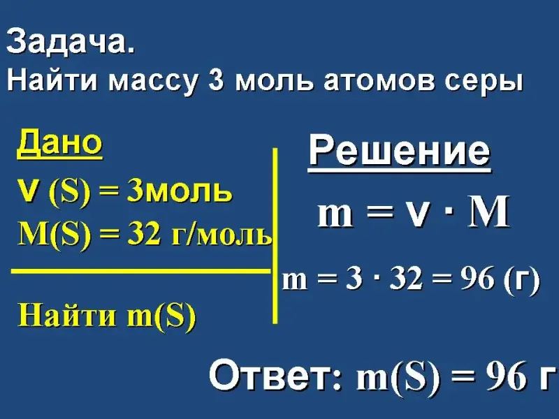 - Решение задачи на нахождение массы вещества по известным количеству вещества и молярной массе.