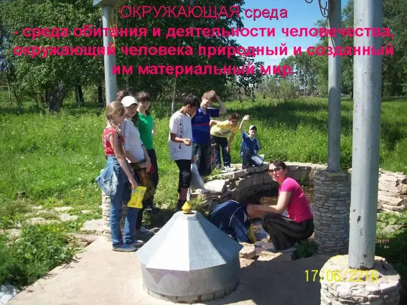 - Что называется окружающей средой? (Среда обитания и деятельности человечества, окружающий человека природный и созданный им материальный мир) (Слайды 12, 13)