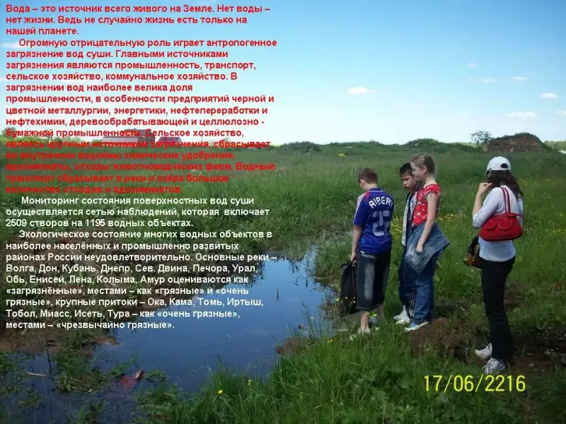 Рассмотрим более подробно загрязнение различных оболочек Земли. Давайте послушаем проекты, которые вы приготовили сами. (Сделанные учащимися презентации по теме исследования были объединены в одну из-за большого объема материала и в целях экономии времени)