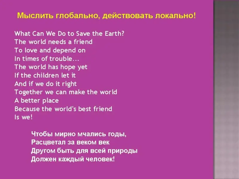 - Какой совет вы могли бы дать всем людям Земли? (Дети читают стихи)