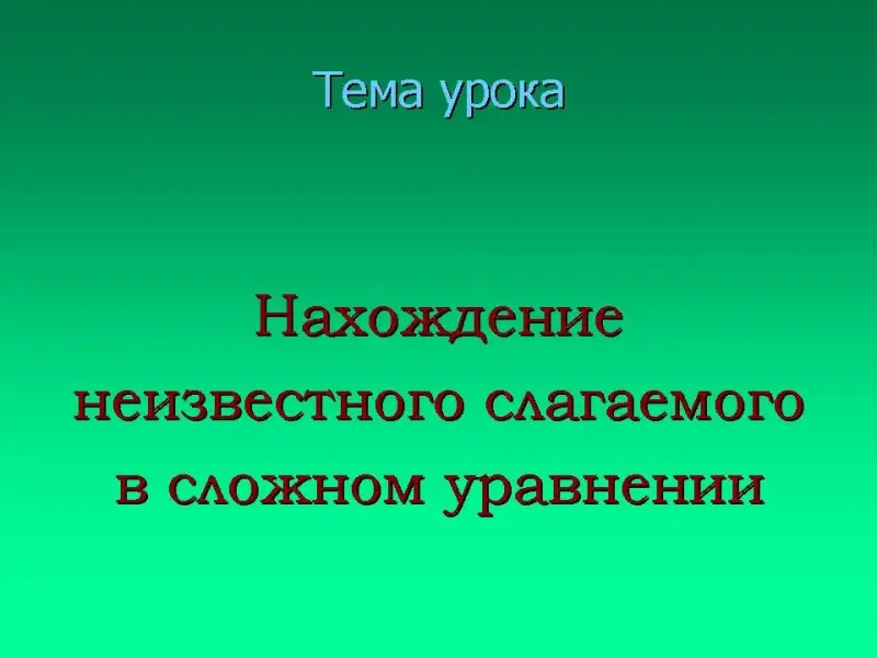 Урок математики в 4-м классе по теме "Нахождение неизвестного слагаемого в сложном уравнении"