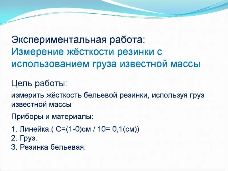 Цель работы: измерить жёсткость бельевой резинки, используя груз известной массы.