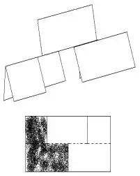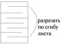 (Лист плотной бумаги согнуть по пунктирной линии и надрезать по сплошным линиям; заштрихованную часть повернуть на 180? вокруг сгиба и поставить фигурку так, чтобы с каждой стороны было по одной узкой и одной широкой ножке.)