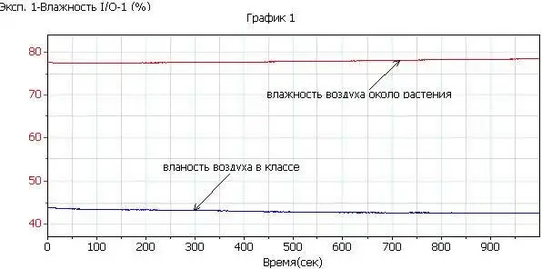- Влажность в классе меньше, чем около растения. С течением времени влажность в классе уменьшается, а около растения увеличивается.