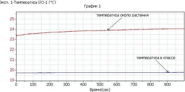 - Температура в классе выше, чем около растения. Со временем температура в классе увеличивается, а около растения уменьшается.