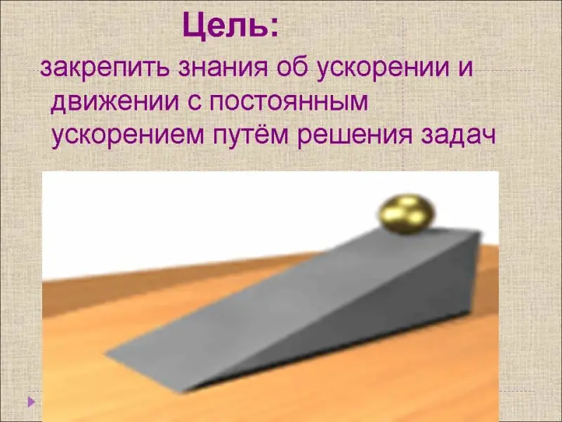- Закрепить знания об ускорении и движении с постоянным ускорением путем решения задач. Учить ребят рассуждать, опираясь на имеющиеся знания, логически мыслить, делать выводы, приводящие в итоге к умению решать задачи.