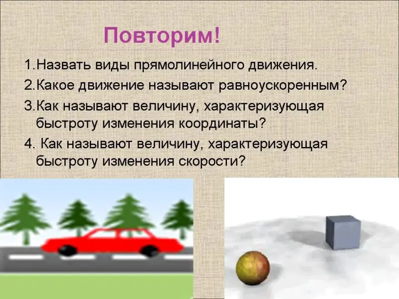 На прошлом уроке вы ознакомились с новой физической величиной - ускорением и новым видом движения - равноускоренным движением. Рассмотрели особенности равноускоренного движения, познакомились с его графическим представлением, знаем, что графики "несут" всю необходимую информацию, выучили формулы, устанавливающие связи между различными физическими величинами.