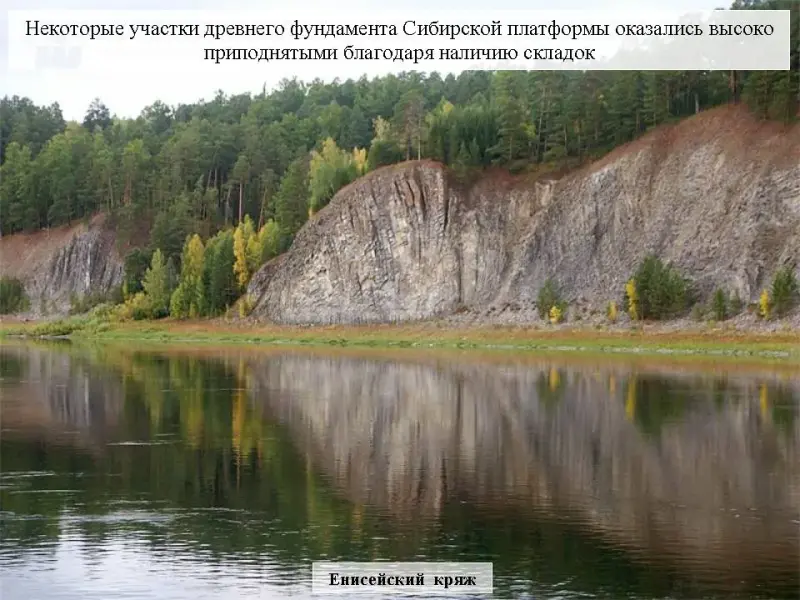 Слайд 17. Некоторые участки древнего фундамента Сибирской платформы оказались высоко приподнятыми благодаря наличию складок. Среди них Енисейский кряж.