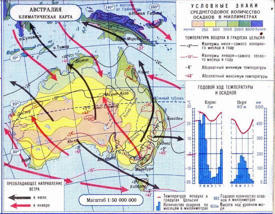 - Определите температуру и годовое количество осадков в центре, на западе и востоке материка?