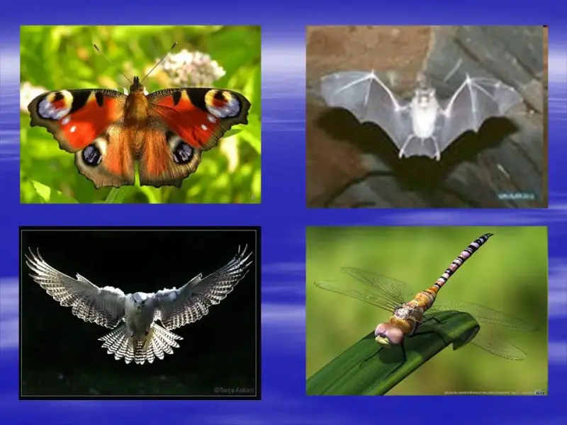 СЛАЙД. - Из представителей на картинке выберите те, которые движутся быстрее, выше и дальше остальных (бабочка, летучая мышь, птица, стрекоза).