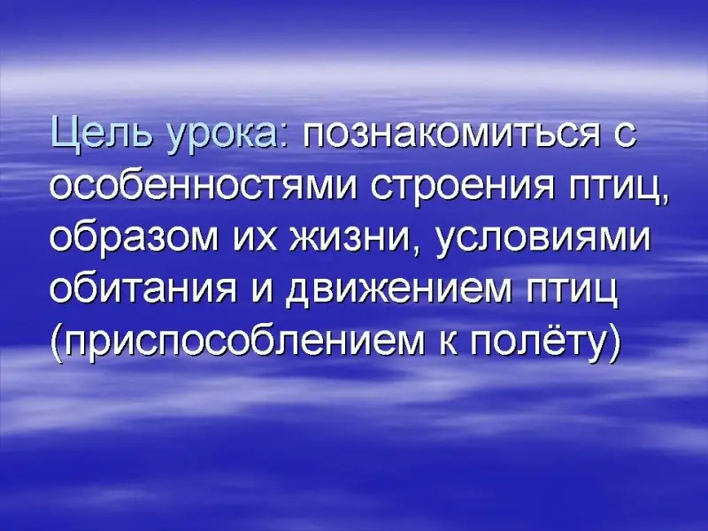 - изучить особенности строения птиц, познакомить с образом их жизни, условиями обитания и движением птиц (приспособление к полету);