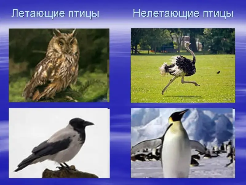 СЛАЙД (2 группы птиц - летающие и нелетающие)