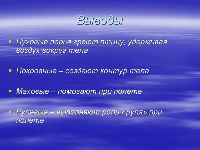 - Какую роль играет каждый вид перьев?