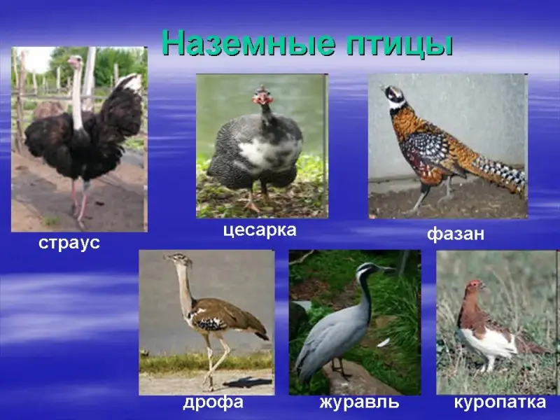 СЛАЙД. Наземные - длинные пальцы, небольшой клюв, передвигаются с большой скоростью.