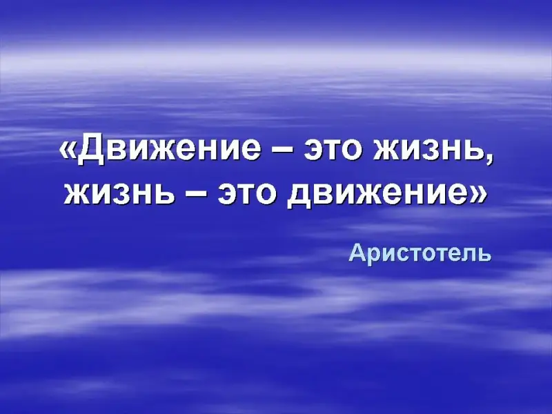СЛАЙД. «Движение - это жизнь, жизнь - это движение». Аристотель.