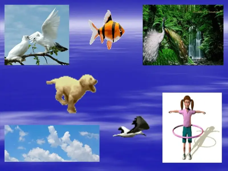 СЛАЙД (анимированные картинки разных движущихся предметов, птиц больше)