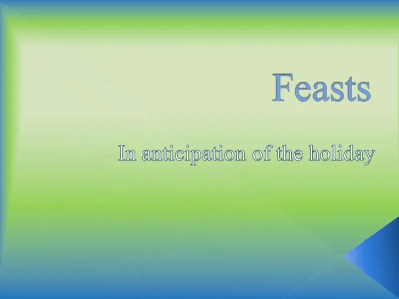 Excellent! Now close your books and look at the board. Let's do the quiz devoted to the topic "Feasts"! Your task is to make a right choice between two answers. (Слайды 13 и 14)