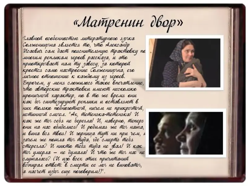 Формы проведения - лекция учителя, сообщения учеников, семинар, сопровождаемые показом слайдов. В конце урока возможно проведение итогового теста, проверяющего качество усвоения материала, беседы, письменной работы ("Какие качества характера позволили А.И. Солженицына стать величайшим писателем мира?") Таким образом, показ слайдов может быть сопровождением всего урока или его части.