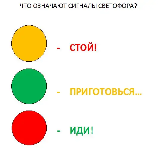 - Молодцы, вы знаете язык светофора! (демонстрируется плакат "Что означают цвета светофора?", <рисунок 2>):