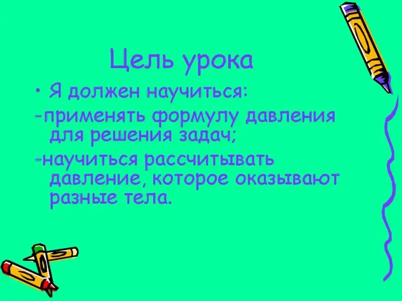 - научиться рассчитывать давление, которое оказывают разные тела.