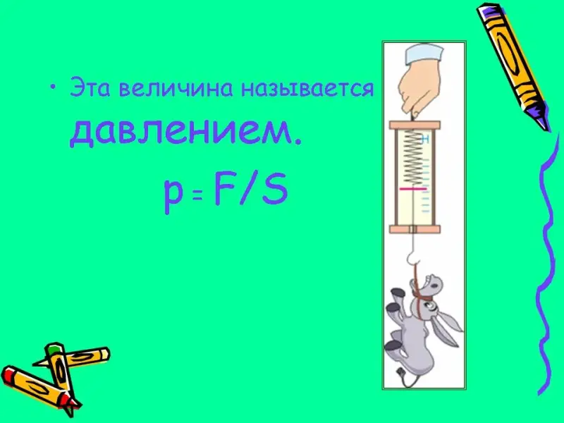 Величина р = F/S называется давлением. (Слайд № 20)