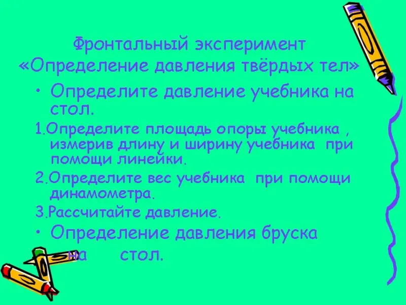 Цель: усвоение способа практического расчета давления твёрдых тел.