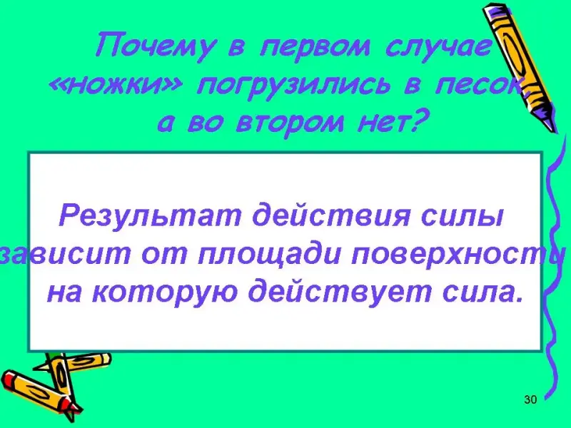Отчего зависит давление? Слайд № 29 Ответы ребят.