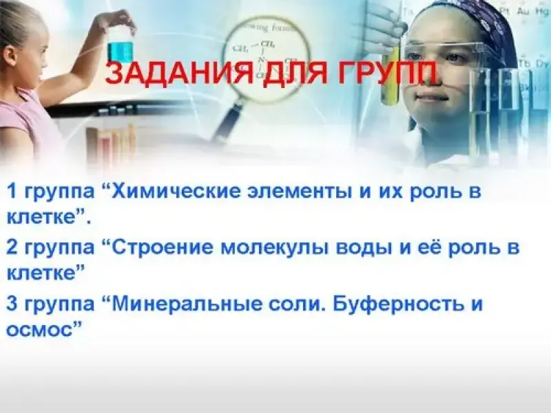 - 2 группа "Строение молекулы воды и её роль в клетке"