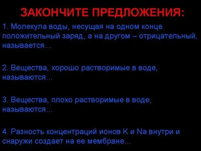 Вода занимает первое место среди всех веществ, входящих в состав клетки. К какой группе веществ относится вода? (неорганические) . На уроке мы рассмотрим особенности строения молекулы воды и её роль в клетке. (слайд 7)