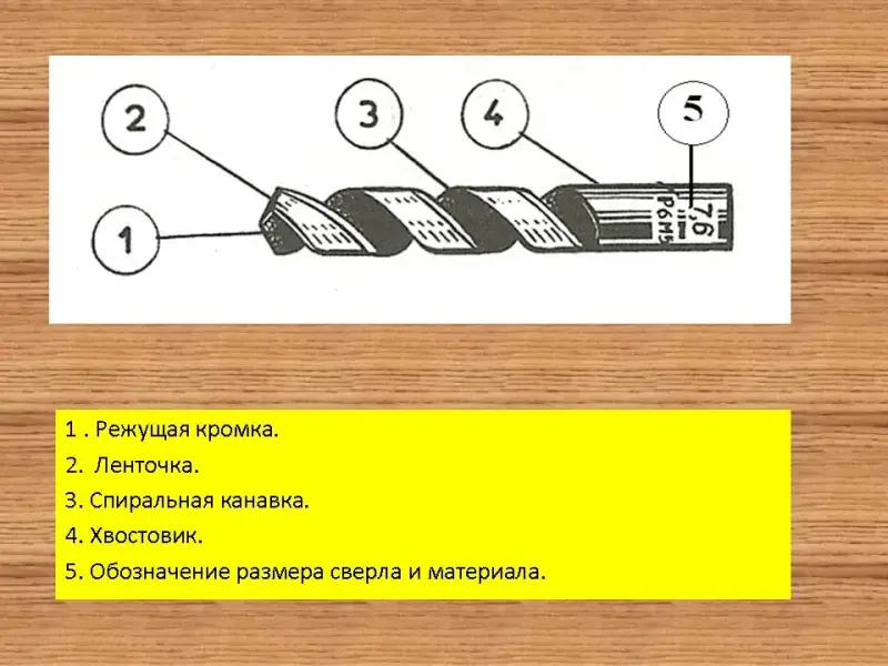 - Давайте теперь посмотрим из каких частей состоит спиральное сверло.