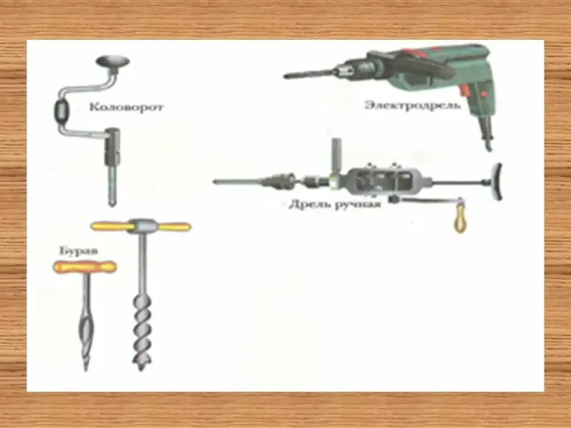 - Итак, ребята мы изучили инструмент для сверления, но мы же не можем сверлить отверстия голыми руками! Как вы думаете, что еще необходимо для сверления.