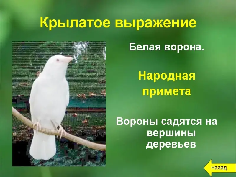 "Белой вороной" называют человека, резко отличающегося от окружающих, "не от мира сего", возможно, одаренного или даже талантливого, но странного, непонятного, "не как все".