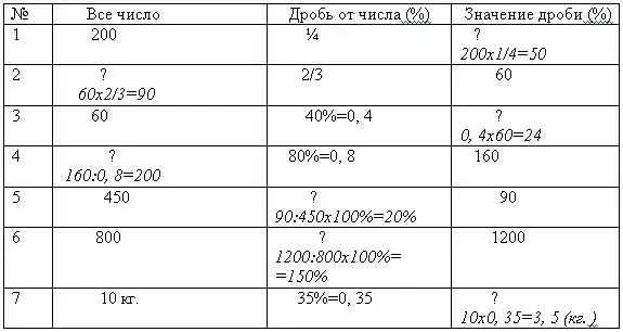 - Актуализация спорных знаний (решение задач на части и проценты).