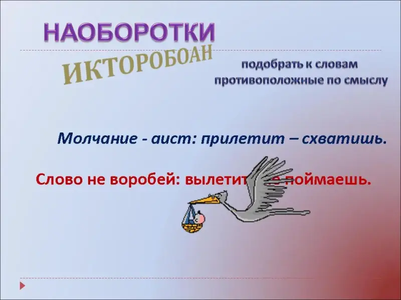 1 команда. Молчание - аист: прилетит - схватишь. (Слово не воробей: вылетит - не поймаешь).