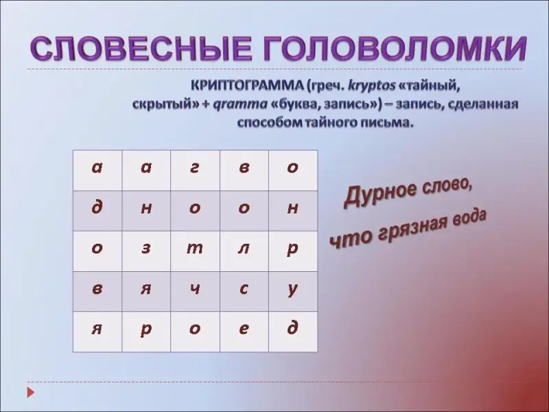 Криптограмма (греч. kryptos "тайный, скрытый" + qramma "буква, запись") - запись, сделанная способом тайного письма.