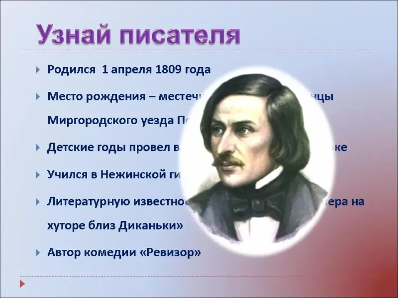- Литературную известность принес сборник "Вечера на хуторе близ Диканьки".