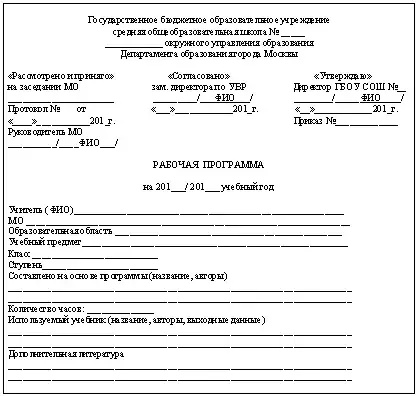 На всех рабочих учебных программах указывается дата их принятия на заседании школьного методического объединения с подписью его председателя, подпись заместителя директора по УВР о согласовании и директора школы об их утверждении с указанием даты и номера приказа. Утверждение рабочих учебных программ по учебным предметам осуществляется до начала учебного года, но не позднее 31 августа текущего учебного года.