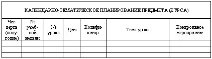 Само календарно-тематическое планирование имеет следующую структуру: