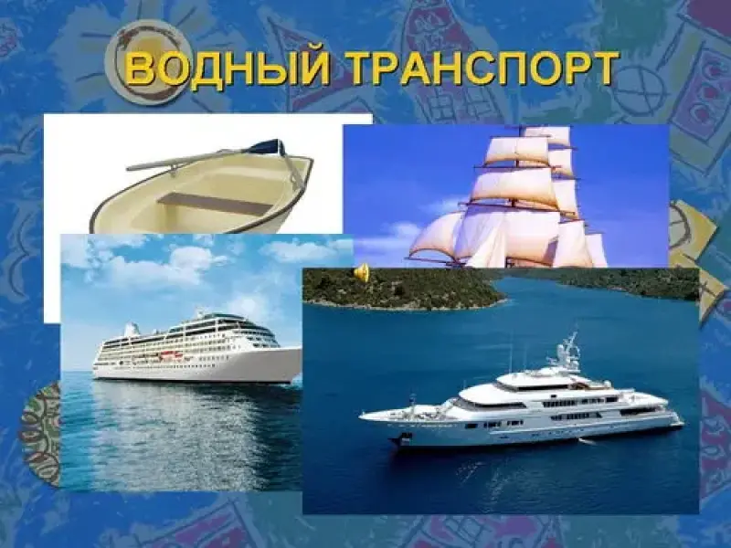 - Где можно встретить водный транспорт? (море, река, океан:).