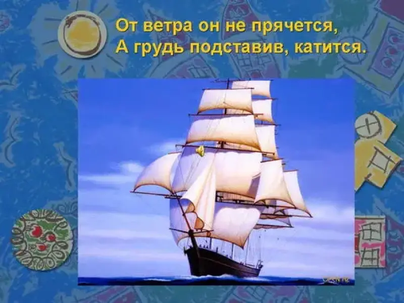А грудь подставив, катится. (Парусник)Под водою дом плывёт,