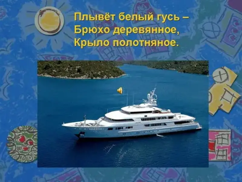 Может плавать этот дом. (Подводная лодка)Плывёт белый гусь -
