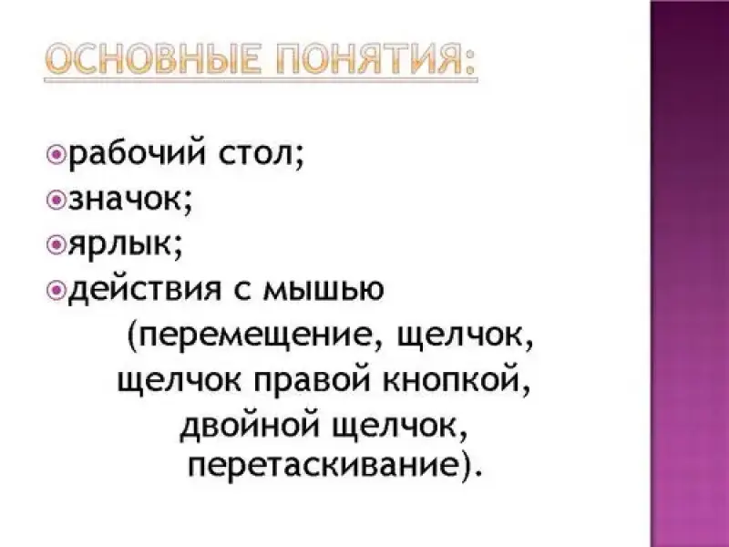(двойной щелчок) и отпустить её. Исходя из этого, можно назвать действия, которые можно совершать с мышью.