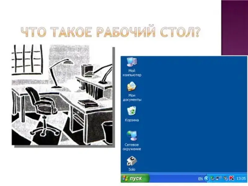 Учитель: Сегодня мы должны узнать что такое Рабочий стол компьютера, какие элементы на нем присутствуют и что общего с рабочим столом обычным.