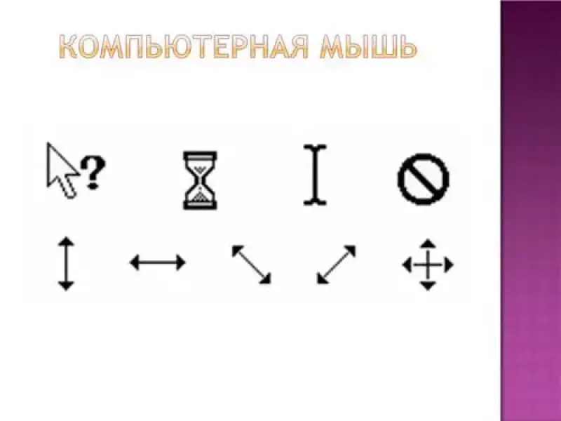 Образом мыши на экране является указатель мыши, чаще всего имеющий форму стрелки. Движение указателя по экрану соответствует движению мыши по коврику.