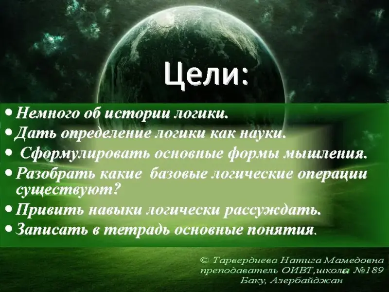 Цель: Привить навыки логически рассуждать, сформулировать основные формы мышления, изучение основных исторических этапов развития логики и знакомство с историческими личностями, связанными с развитием данной науки с Древних времен и по сей день.
