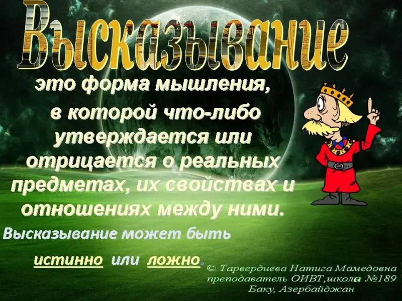 - Определите значение истинности следующего высказывания: "Приставка есть часть слова, и она пишется раздельно со словом".