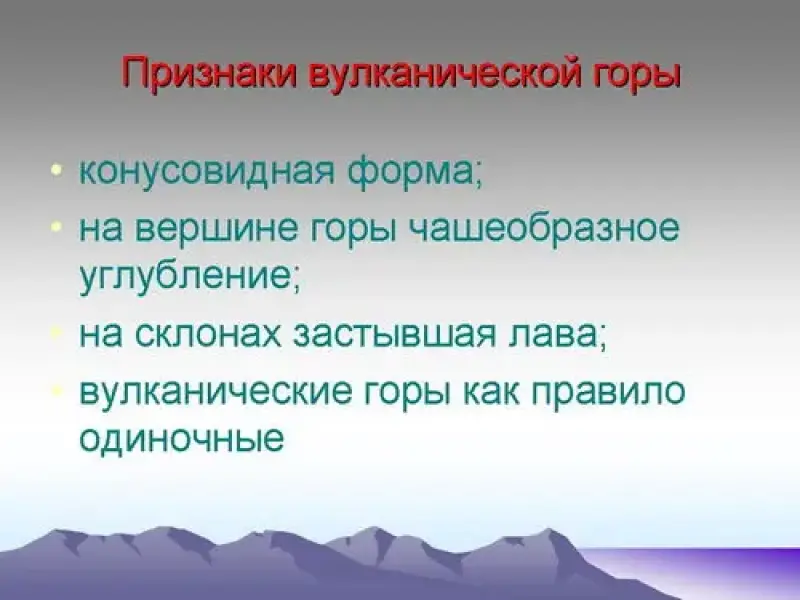 - вулканические горы как правило одиночные. Слайд №12.