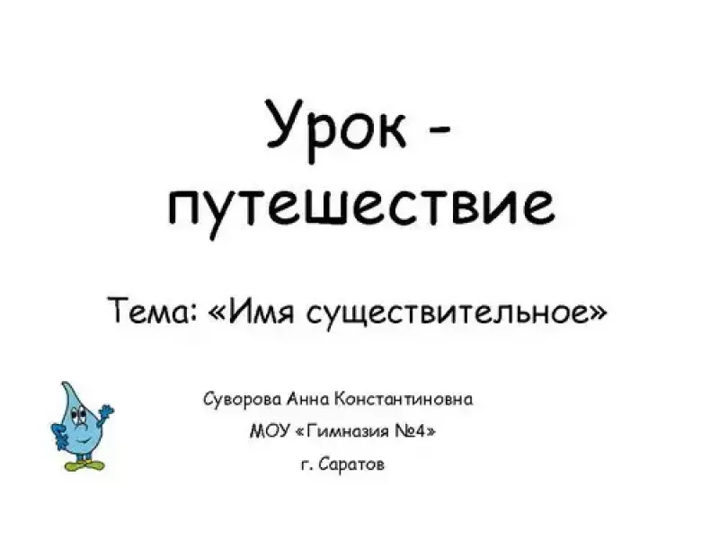 - Сегодня мы с вами совершим путешествие с маленькими каплями воды, которые помогут нам вспомнить, что мы знаем об имени существительном.